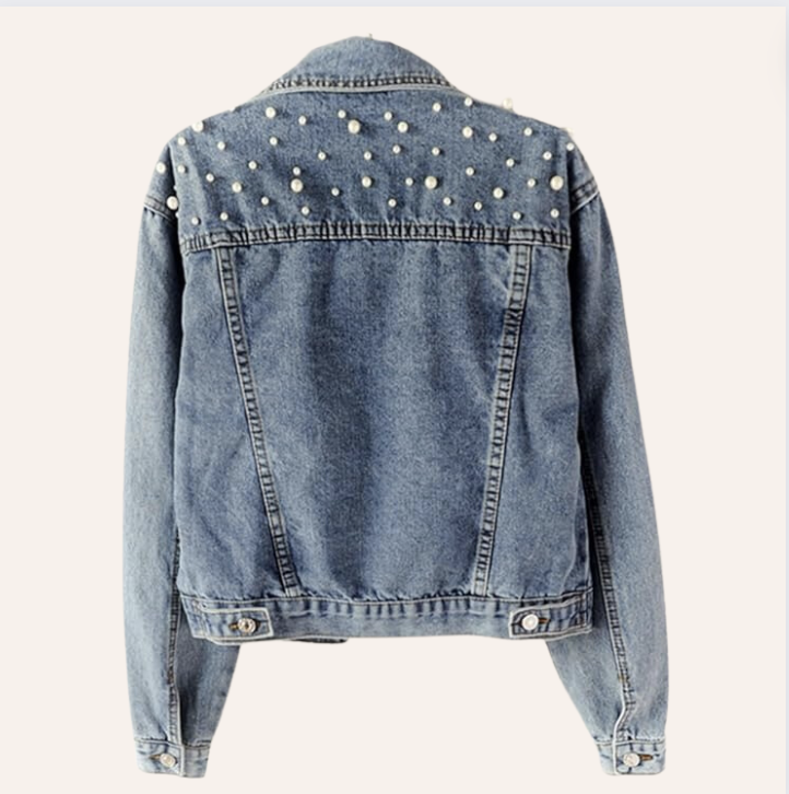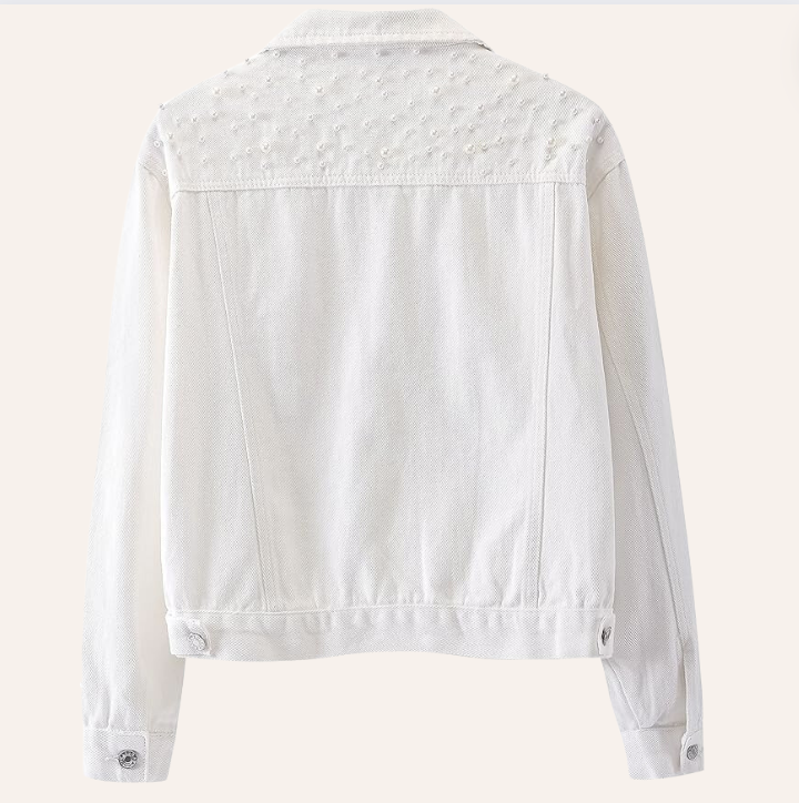 Women's White Denim Jacket with Pearls