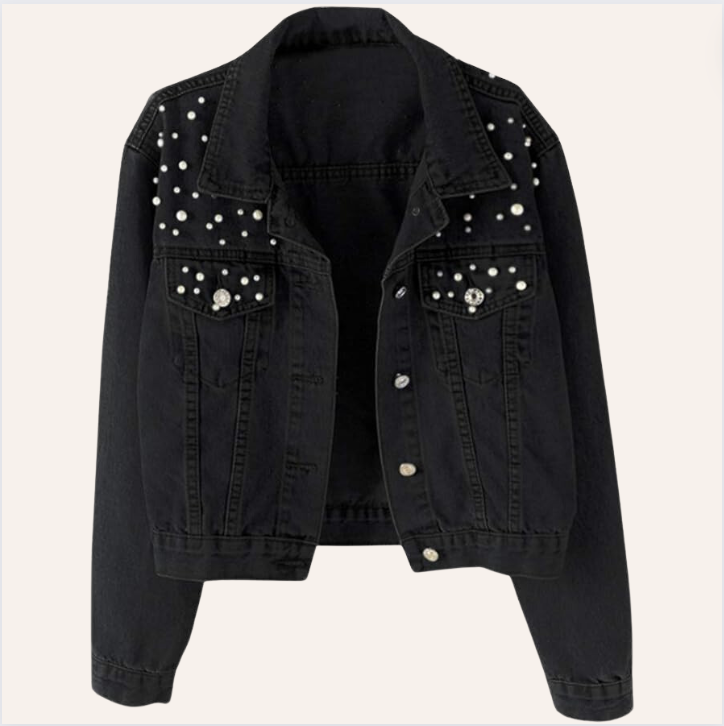 Women's Black Denim Jacket with Pearls