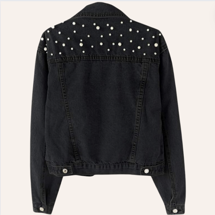 Stylish and unique pearl star washed denim trucker jacket for women girls, classic and stylish.