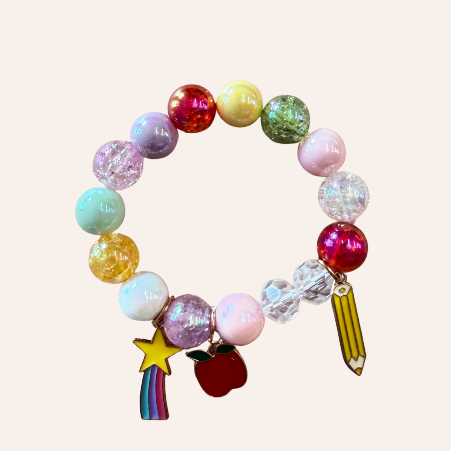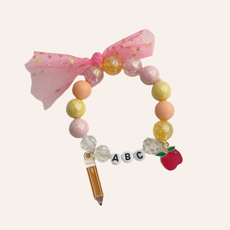 Crushed bead bracelet with school accents, tied with a tulle bow Elastic stretch