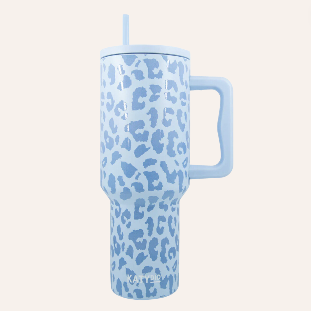 KD Light Blue Leopard 38oz Tumbler Cup with Handle