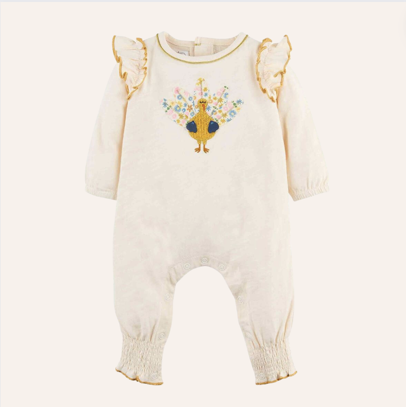 MP Ivory Turkey Footless Onesie with Ruffle Shoulder