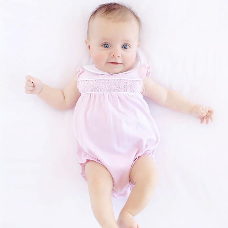 The Banbury Bubble in Palm Beach Pink is a true classic! This sweet bubble features smocking, flutter sleeves, and a traditional collar. She'll be cool and comfortable and look perfectly put together at the same time.