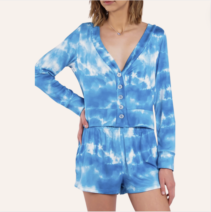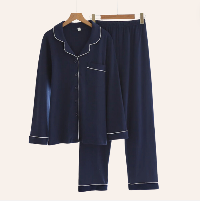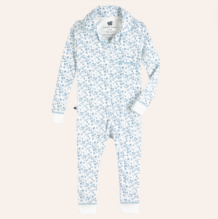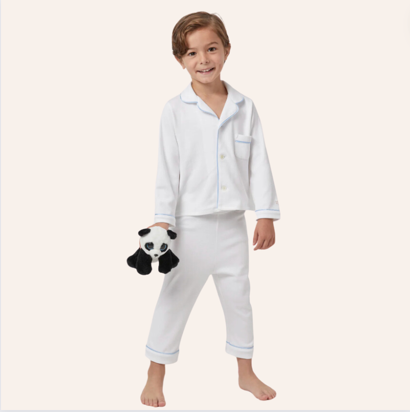 LTC Kids White Long Sleeve Pajama Pant Set with Blue Piping