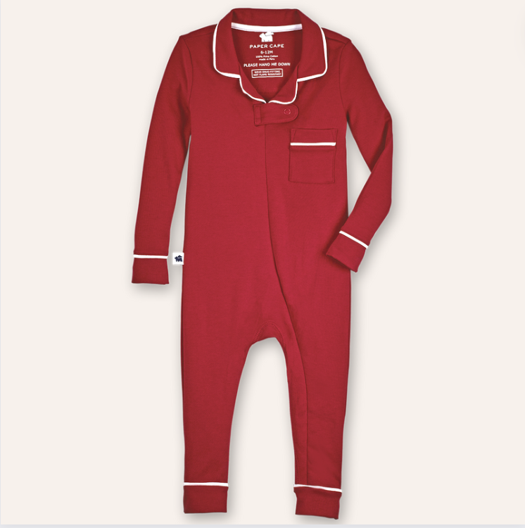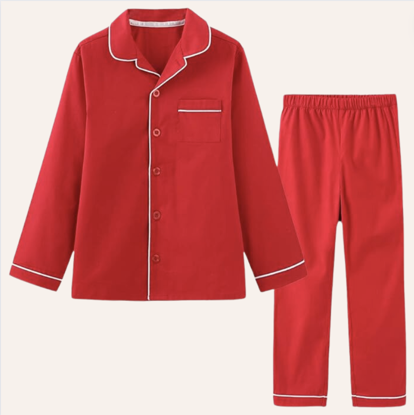 LTC Kids Red Long Sleeve Pajama Pant Set with White Piping
