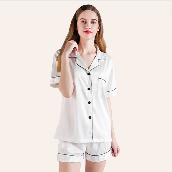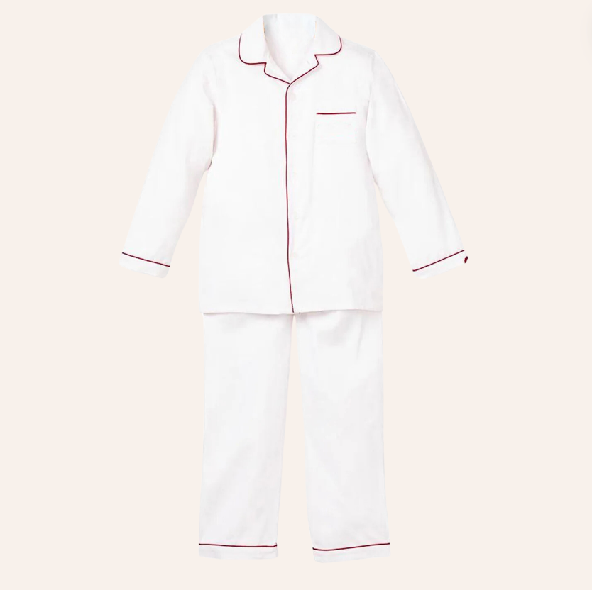 LTC Kids White Long Sleeve Pajama Pant Set with Red Piping