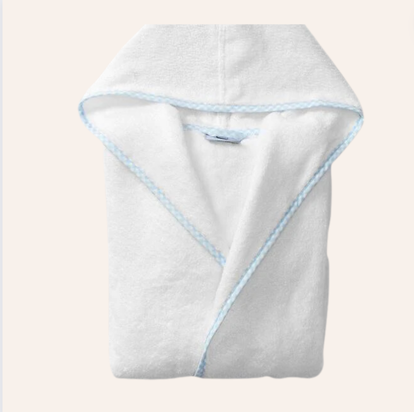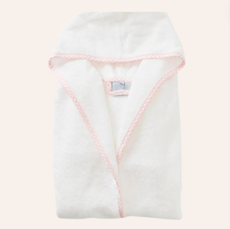 White Baby Bathrobe with Blue and Pink Gingham Piping