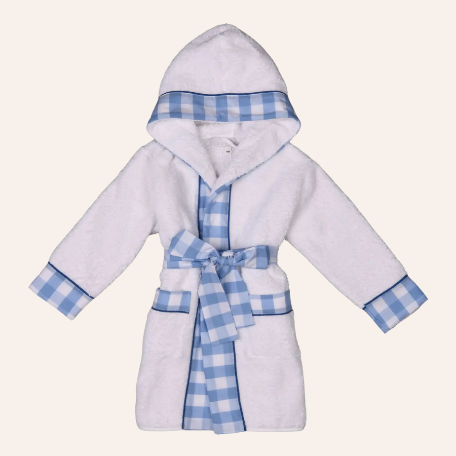 BS Noa Boys White & Blue Gingham Cotton Bathrobe
