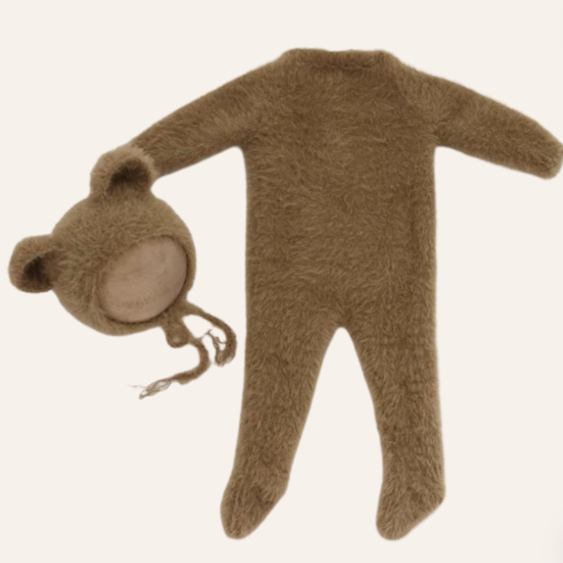 Faux Fur Onsie with Button Back and Beanie with Bear Ears