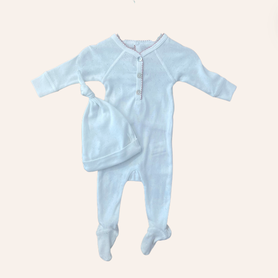 Mon Tressor Footie with Pink Trim and Beanie Set
