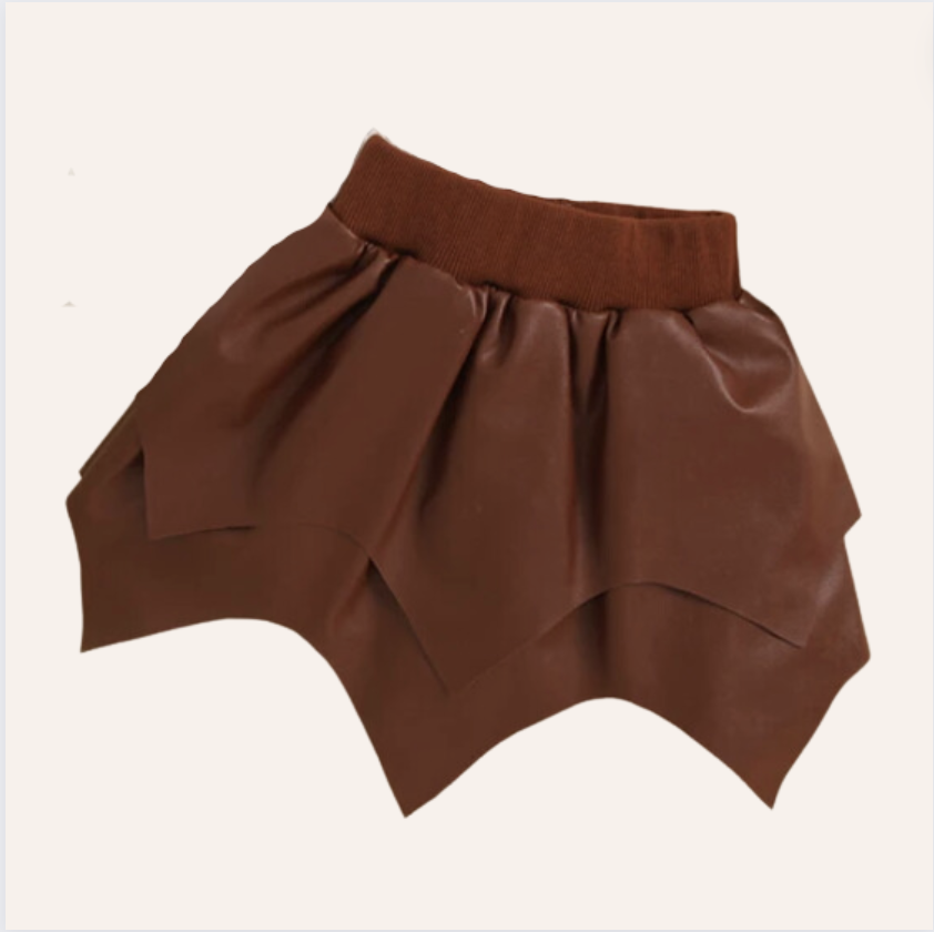 Dark Brown Faux Leather Asymmetrical Baby Skirt