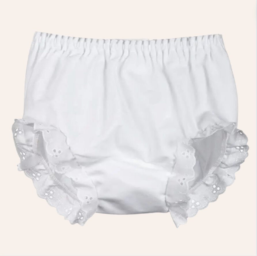 ZZL White Diaper Cover with Eyelet Ruffle