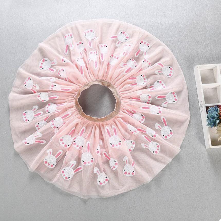 Featuring adorable sequin embroidered Easter bunny motifs scattered across the mesh fabric, this skirt captures the magic of the holiday season. The shimmering sequins add a hint of sparkle and shine, making your little one feel like a princess as they twirl and play.