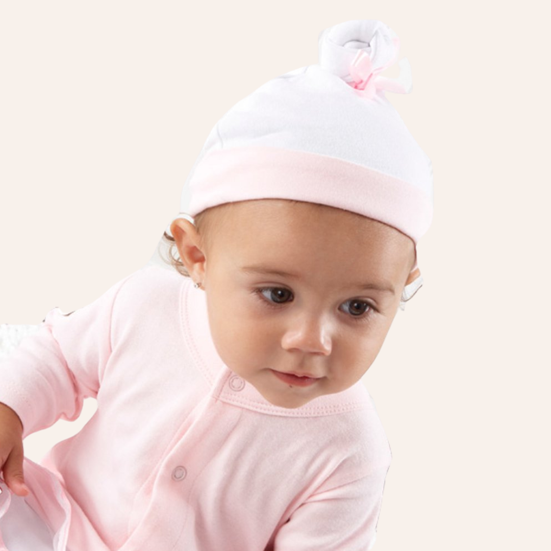 Made of 100% lusciously soft cotton with an organza tutu trimmed with pink satin ribbon Newborn 0-6 months.