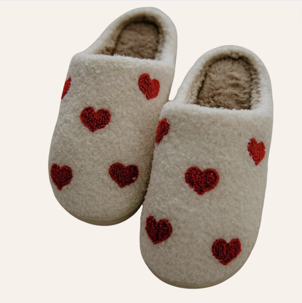 Women's Slippers - KD White with Red Hearts All Over