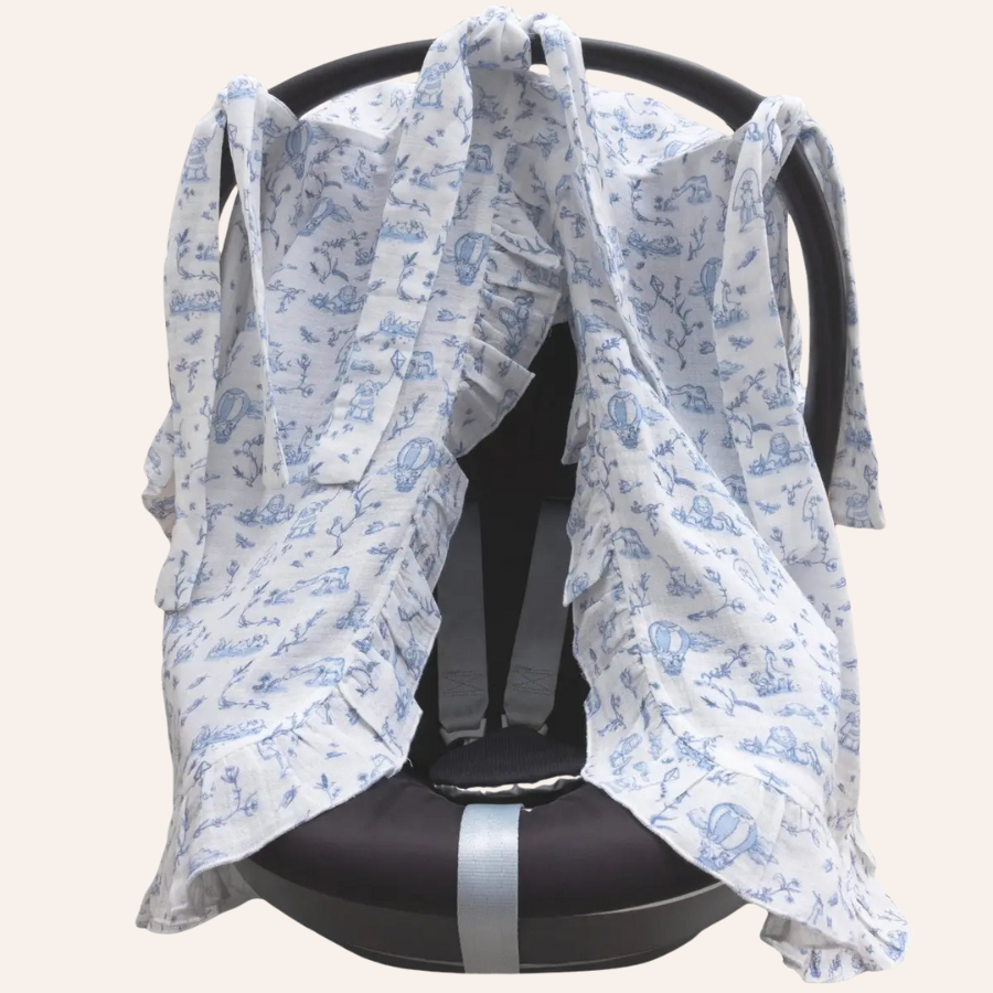 100% Cotton Stroller Cover Printed using GOTS certified dyes. Machine washable at 86°F.
