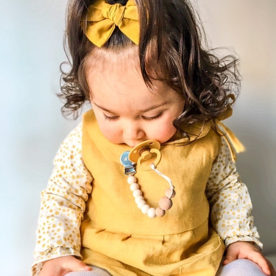 Our silicone beaded pacifier clips are a must-have for parents looking to keep their baby's pacifiers and teething toys clean, safe, and within reach. Made from 100% BPA-free, food-grade silicone, these clips are soft, durable, and perfect for little hands to grab onto. The beads come in a range of vibrant colors and the clips feature a sturdy clasp that easily attaches to your baby's clothing or blanket.