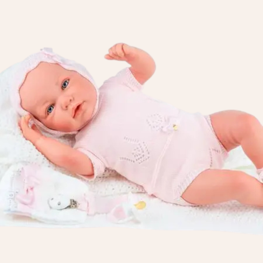 Soft-bodied wrist and limbs made of high-quality vinyl weighted to simulate the actual weight of a baby. Articulated to adopt different postures.