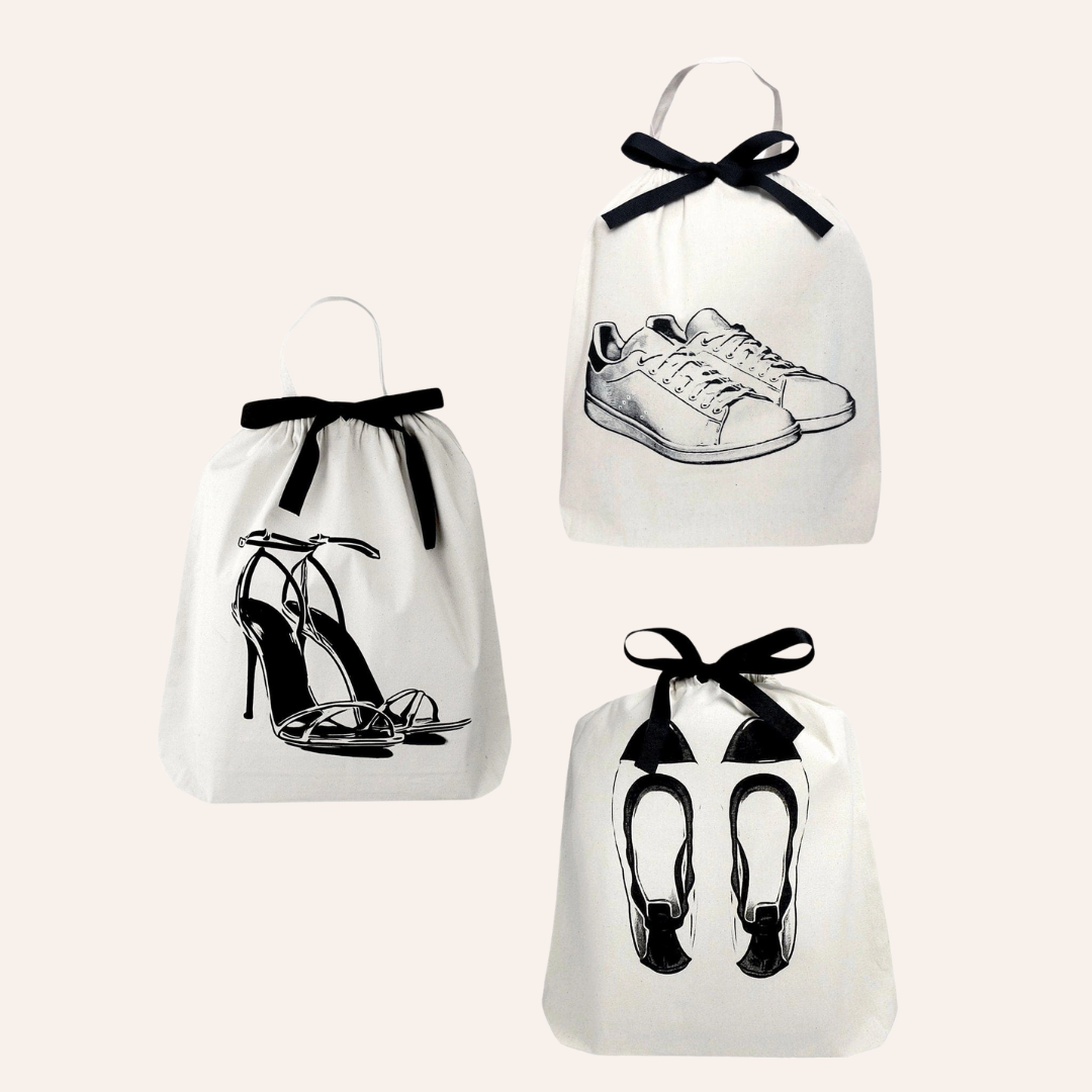 Looking for the perfect gift for the travel enthusiast in your life? Look no further than our luxurious Shoe Bags Gift Set. This 3-pack cream set is crafted from high-quality cotton, ensuring both durability and style. Keep your shoes organized and protected during your trips with our White Sneaker Shoe Bag, High Heel Sandal Shoe Bag, and Ballet Flats Shoe Bag. Give the gift of organized travel with our Shoe Bag Gift Set - it's a practical and thoughtful present that they'll truly appreciate!