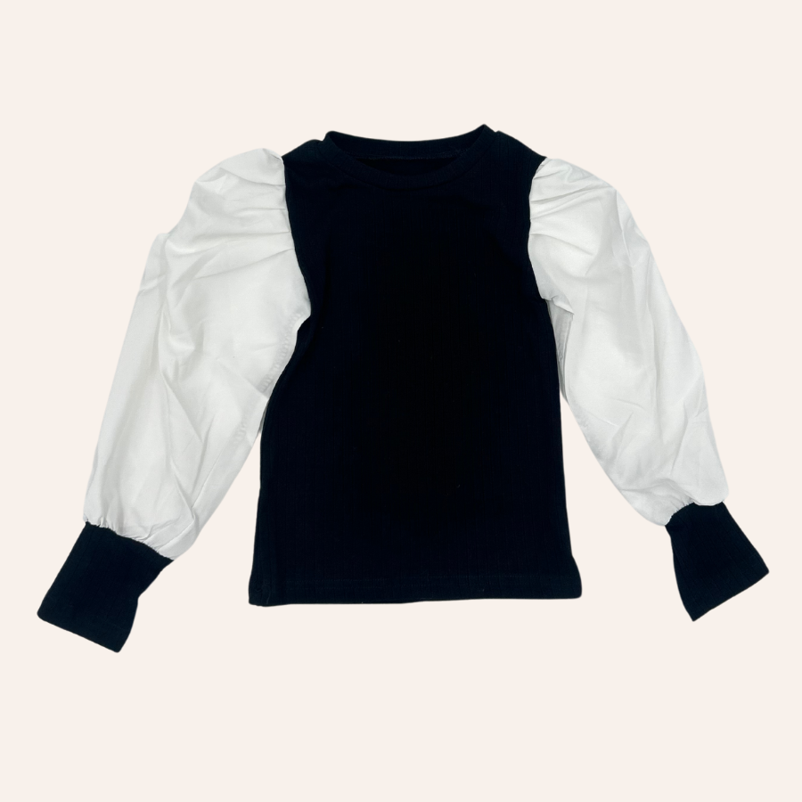 Introducing our Baby Black Long Puff Sleeve Top, a stylish and versatile addition to your little one's wardrobe! Crafted with care from high-quality materials, this top combines comfort with a touch of fashion-forward flair.