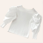 The highlight of this top is the long puff sleeves, adding a trendy and playful element to the design. The puff sleeves create a voluminous and stylish look that's perfect for making a statement while keeping your baby comfortable.