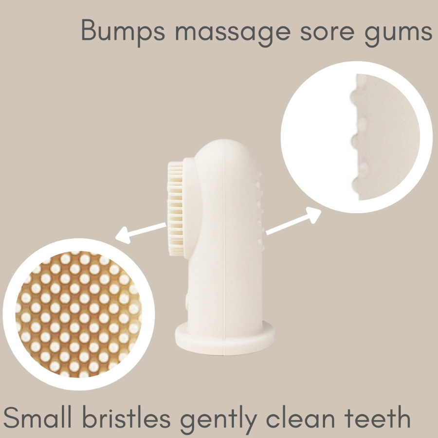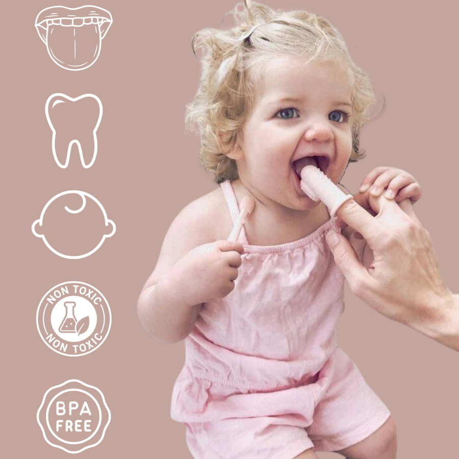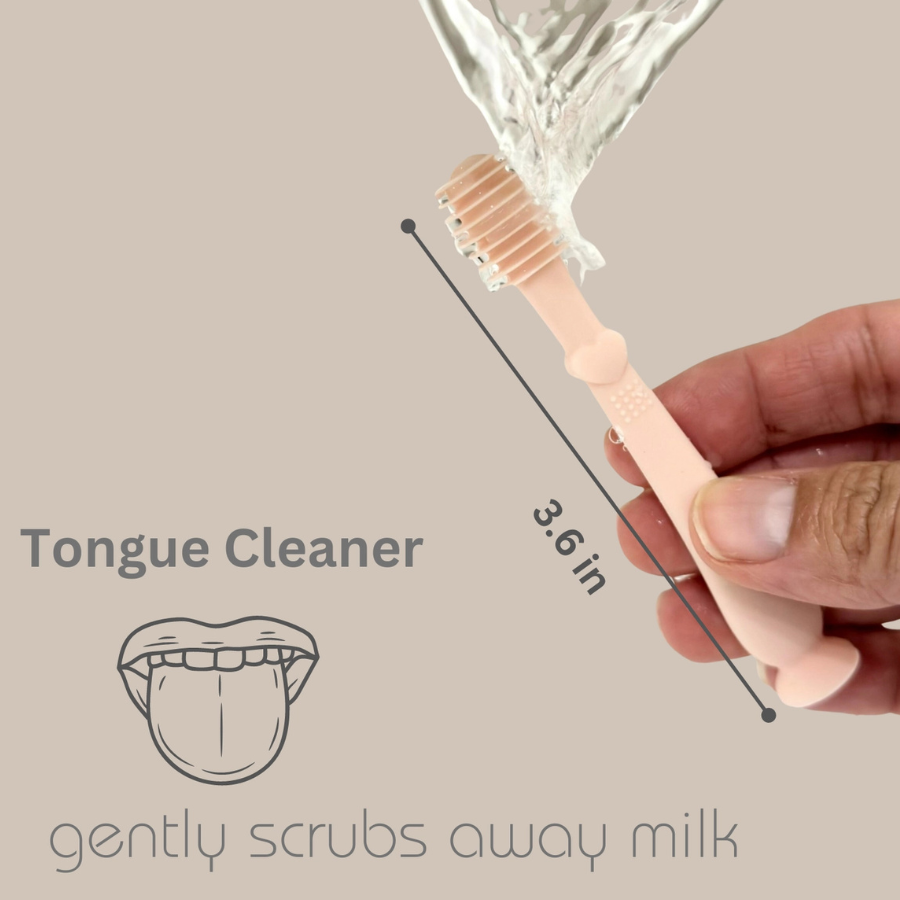 The finger brush's soft bristles clean your baby's gums and teeth, and the soft tongue cleaner helps clean the tongue milk coating.