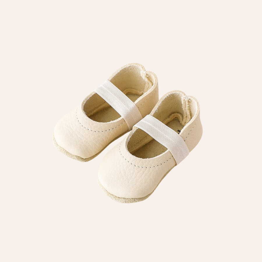 These monochrome baby Mary Janes blend timeless charm with modern simplicity. Designed with a soft sole for healthy foot development, they feature a tonal strap and sole for a clean, minimalist look. Crafted from premium leather, they’re perfect for early walkers and ideal for boutiques seeking subtle feminine styles. Available in light pink, and almond.