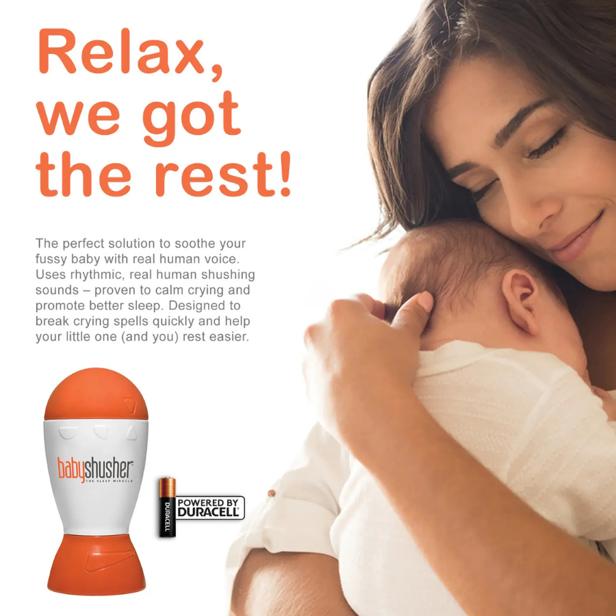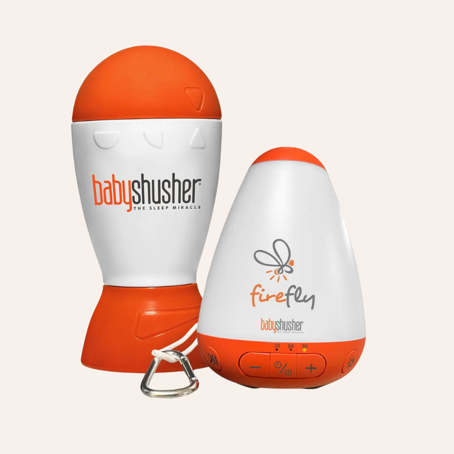 Soothe your baby around the clock with the Baby Shusher + Shusher Firefly Nightlight Bundle the perfect day and night solution for calm, restful sleep. The Baby Shusher uses real human “shhh” sounds to activate your baby’s natural calming reflex, helping to ease fussiness during the day and promote naps at home or on the go. When nighttime arrives, the Shusher Firefly sets the perfect sleepytime atmosphere with a soft amber glow and rhythmic shushing.