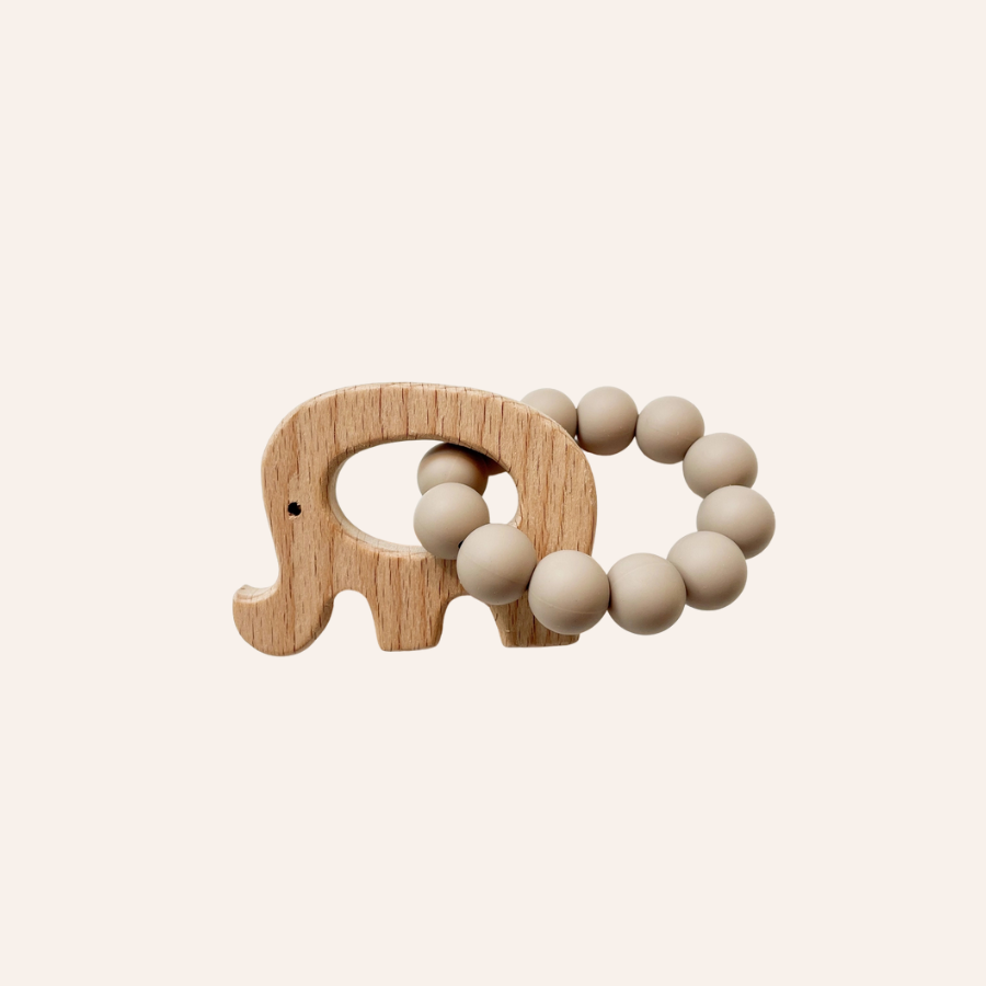 Ease your little one's teething pain with a combination of soft food grade silicone beads, and beech wood accents.
