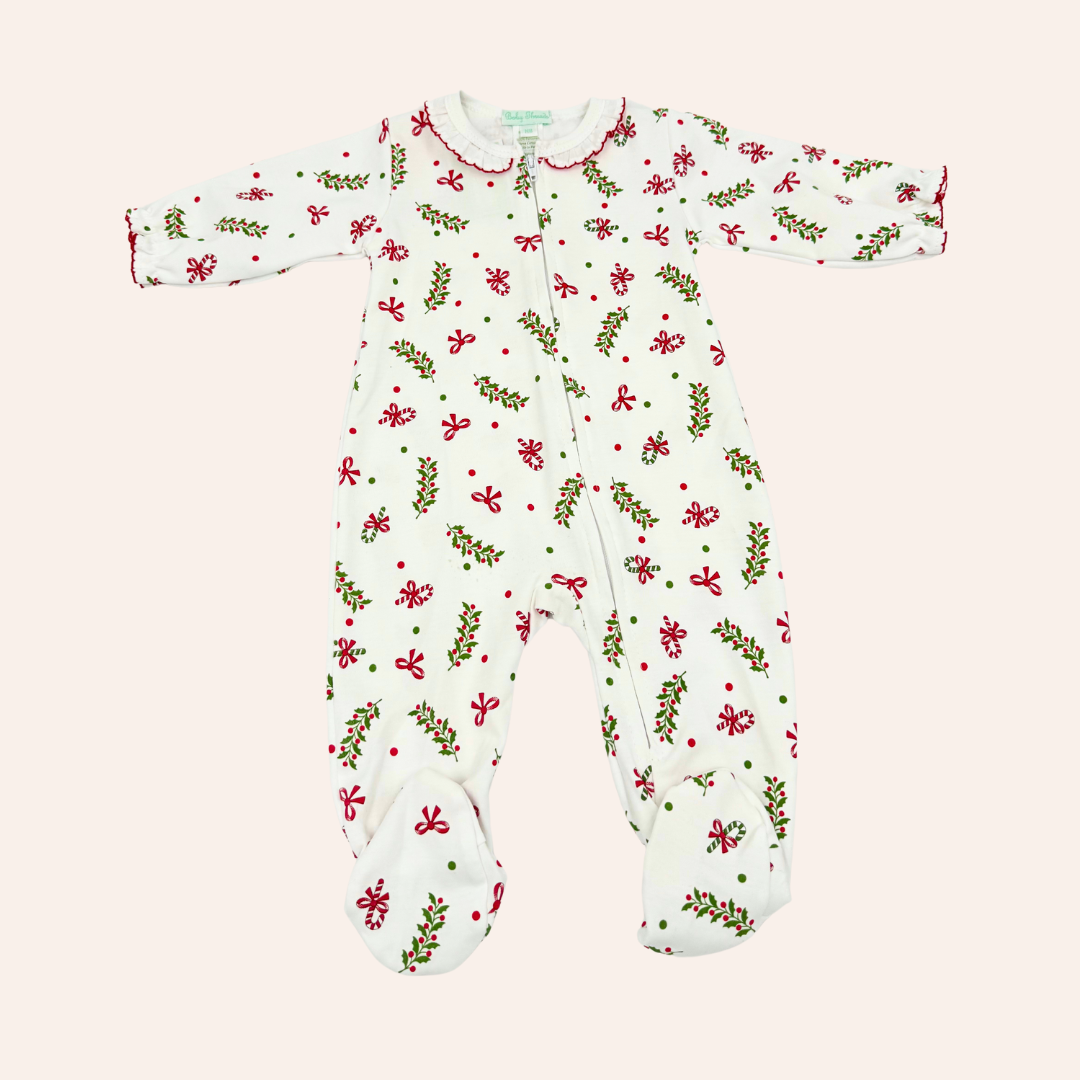 Christmas candy canes motif print 100% Pima Cotton Baby footie pajama. Made in Peru