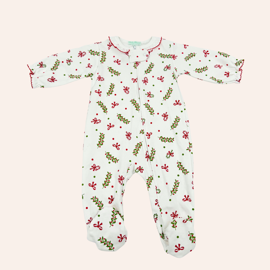 Christmas candy canes motif print 100% Pima Cotton Baby footie pajama. Made in Peru