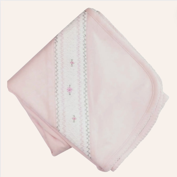 BT Pink and Grey Smocked Blanket with Mini Flowers