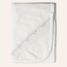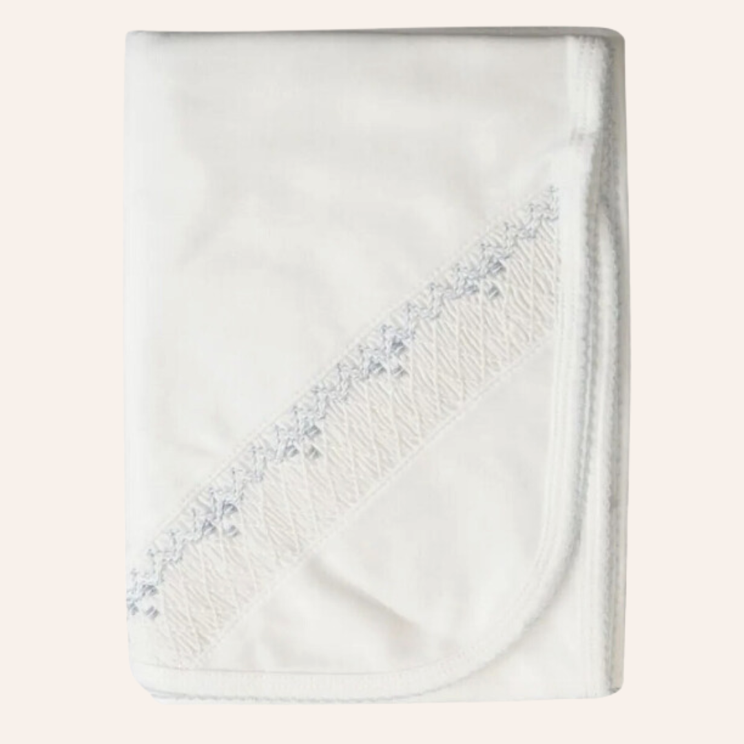 BT White and Light Blue Smocked Blanket with Blue Embroidery