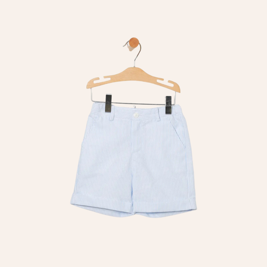 CA Boy's Set: White Polo and Light Blue Striped Bermuda Shorts