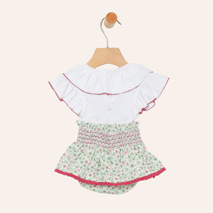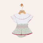 CA Girl's Set Green Vichy Blouse and Fuchsia Bloomers with Bow