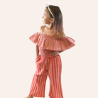 Sweet and stylish, this 2-piece set features a smocked ruffle top and matching candy-striped pants. Perfect for playful days or dress-up fun!