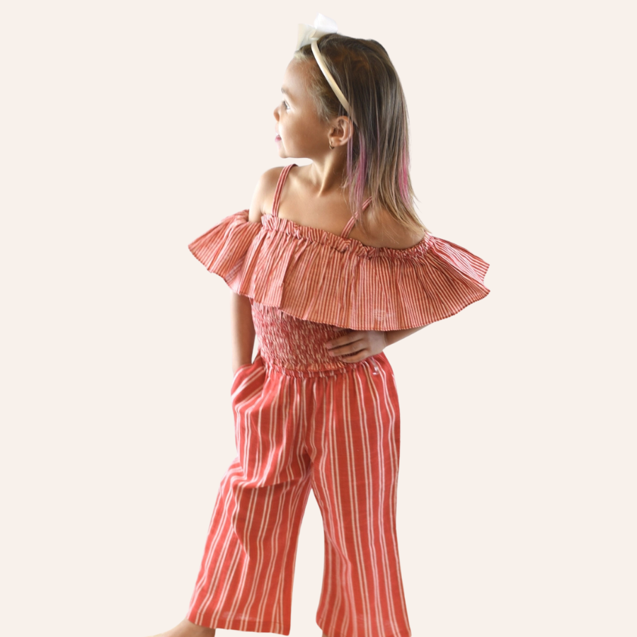 Candy-Striped Smocked Ruffle Top & Pants Set – 2 Piece