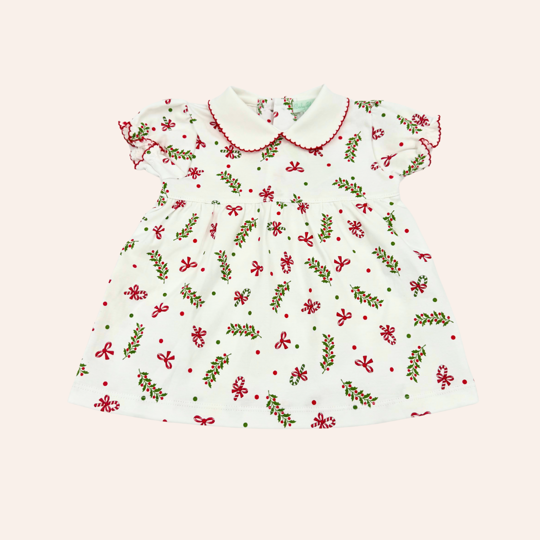 BT Christmas Candy Canes and Bows Pima Cotton Baby Girl Dress