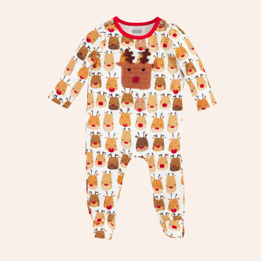 Enhance your little one's sleepwear collection with our adorable Reindeer Applique Baby Sleeper. This photo-ready sleeper showcases exquisite appliqued details, making it perfect for capturing precious moments. Crafted from soft and breathable knit bamboo, this footed sleeper ensures your baby's utmost comfort throughout the night. The coconut wood button shoulder placket adds a touch of natural elegance to the design, while the inner leg snap closure provides easy diaper changes. Rest easy knowing that our sleeper complies with all CPSC child safety regulations, offering a snug and secure fit. When it's time to clean, simply turn the sleeper inside out and machine wash on cold with like colors. For fuss-free drying, tumble dry on low. Made from a blend of 96% Viscose derived from bamboo and 4% Spandex, our pajamas combine style, sustainability, and stretchiness for your little one's ultimate coziness.