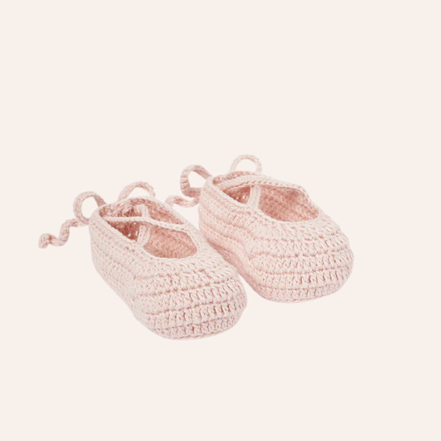 Our beautiful Pink Ballerina Hand-Crocheted Baby Booties are the sweetest, most comfortable, soft-sided shoe you'll find for babies 0-12 months. Made from 100% cotton yarn, the soft knitting feels like pillows on those precious baby feet and slip on with ease. The adjustable drawstring bow on the back ensure a snug fit so booties stays on.