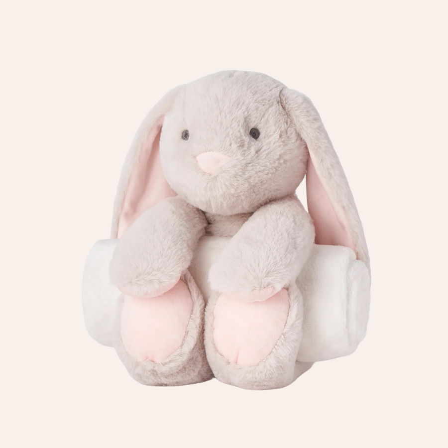 Bedtime huggie plush toys combine two items essential to every baby's needs: a toy & blanket! While the fleece baby blanket is perfect for warmth, comfort and security, the playful plush toy is super soft and perfect for squeezing, hugging and loving!