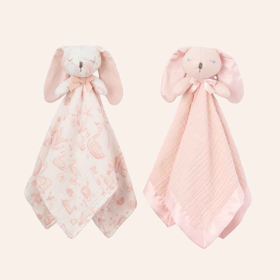 Introducing Sleepy Pals, a duo of soft organic muslin security blankets to ensure comfort is always within reach. Ideal for moments when their favorite needs a rest or for keeping one at home and one on-the-go. Perfect for soothing little ones through every cuddle, nap, and wash day.
