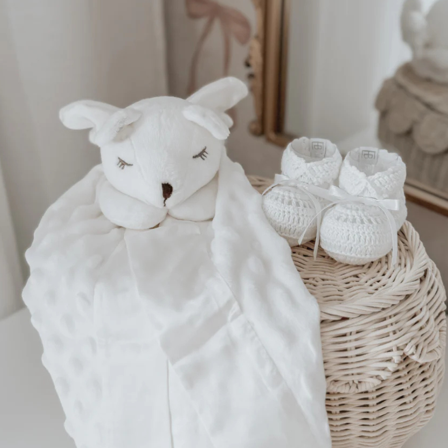 Put your hands together and give grace with this Classic Prayer Bear Security Blanket. Your little one will adore curling up and cuddling with this Classic Prayer Bear Security Blanket! And measuring at 14 inches, it's perfect for all babies who enjoy taking their blankie on-the-go! This security blanket is the perfect birthday, Christmas or Christening gift! Make sure to check out the rest of our Christening Collection to create your own customized gift set.