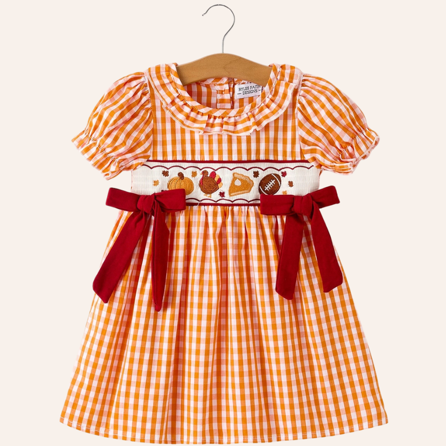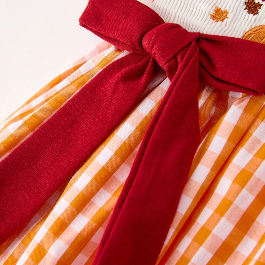Celebrate the season in style with this charming Fall Embroidered Dress for Girls. Featuring a vibrant orange checkered pattern accented with delightful Halloween details, it perfectly captures autumn’s festive spirit. Crafted for comfort and designed to stand out, this dress makes every fall occasion special, from pumpkin patches to family gatherings. Let your little one enjoy the season with a playful yet cozy look that’s sure to turn heads.