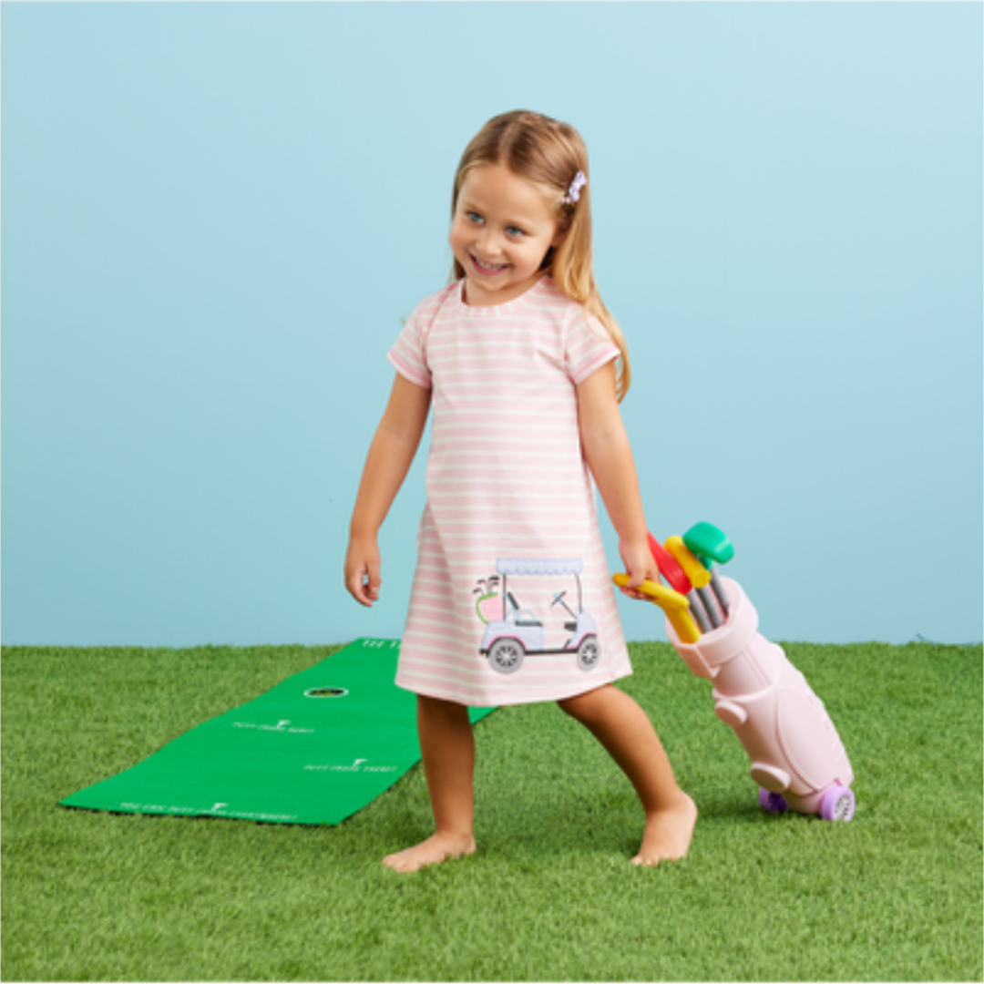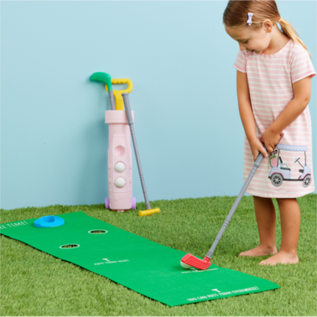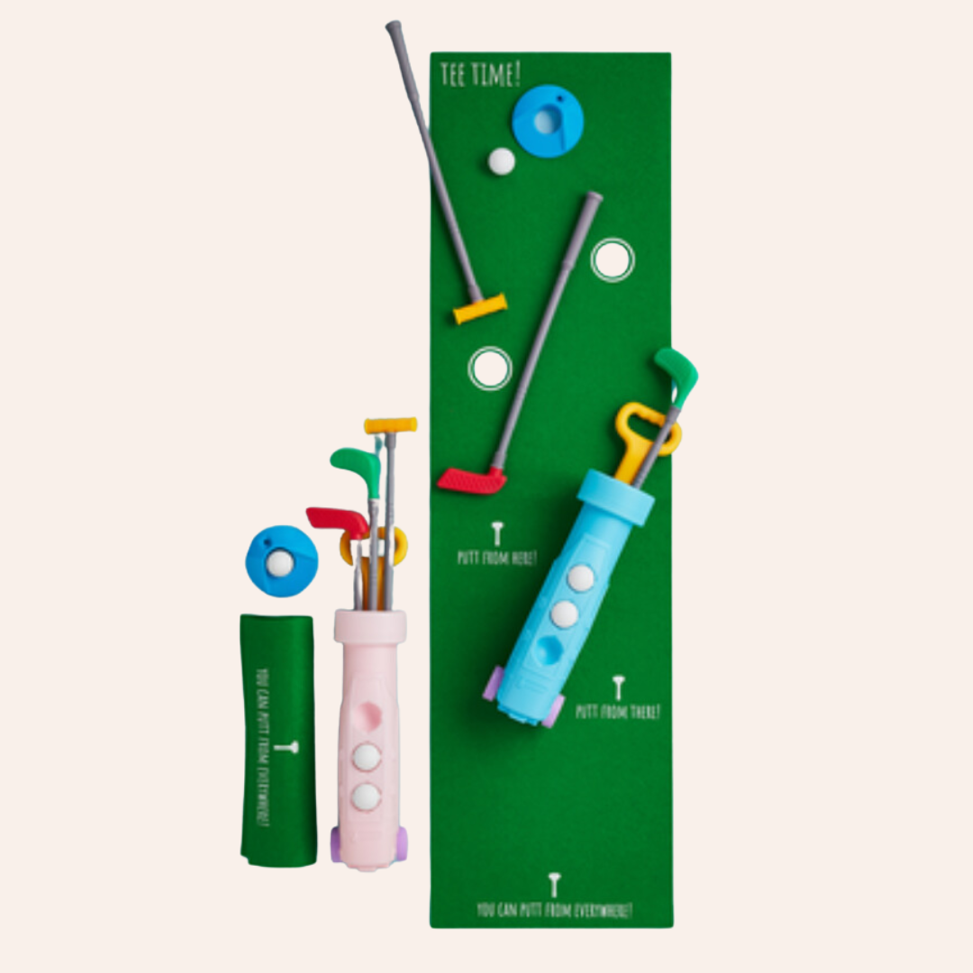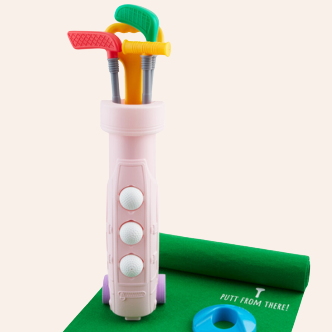 The Pink Golf Play Set is a durable and vibrant toy that offers kids a fun and engaging way to practice their golf skills. With a mini golf club, colorful golf balls, and a putting green, children can work on their swing and aim as they try to sink the ball into the holes. The set's bright pink colors are eye-catching and sure to appeal to kids of all ages. It's an excellent tool for developing hand-eye coordination and introducing the basics of golf. Whether playing solo or with friends, the Pink Golf Play Set guarantees hours of entertainment for kids.