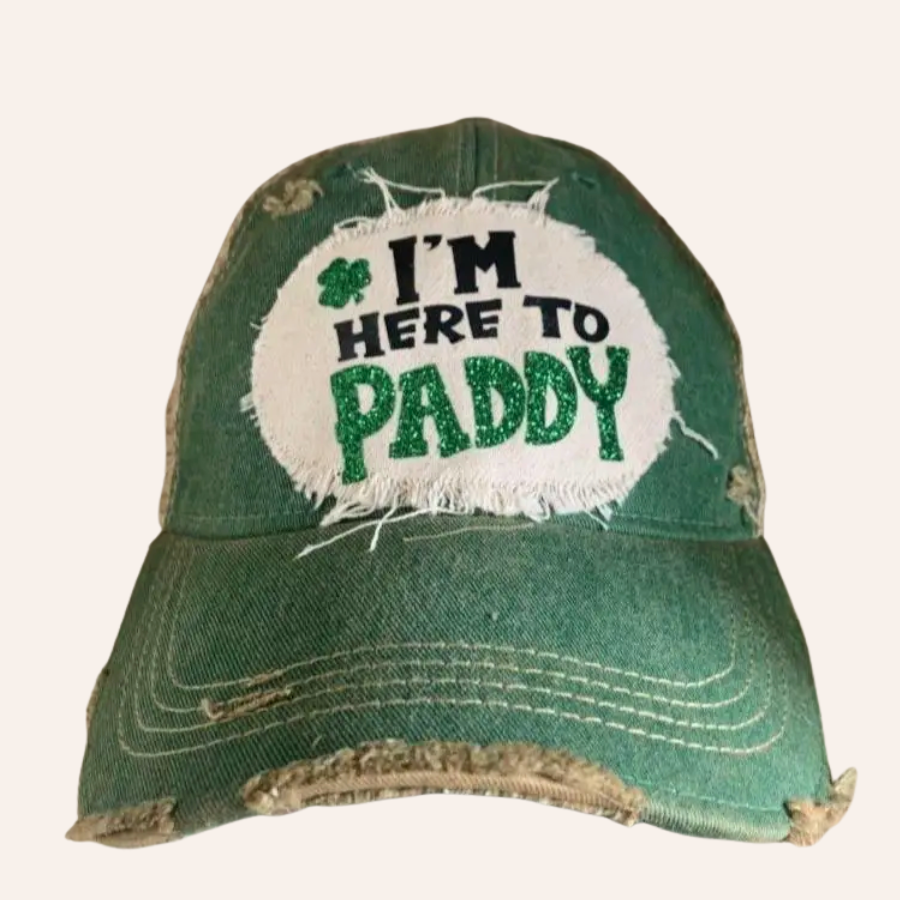 Celebrate St. Patrick's Day in style with the "I'm Here to Paddy" Green Trucker Hat. Featuring bold lettering and a shamrock design, this adjustable hat adds a fun, festive touch to any outfit. Perfect for parades or casual wear!
