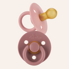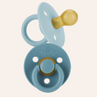 Meet the Itzy Soother™ Natural Rubber Pacifiers! Each natural rubber nipple is cherry-shaped to mimic breastfeeding & accented with a cable handle. Doubly-soothing, every packaged set includes two complimentary colors while meeting ASTM safety standards and are BPA free. Tranquility (and chill vibes!) are restored for your little cutie! Pack of 2 pacifiers. Ages 0m-6m.