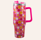 KD Red Flower Happy Face 40oz Stainless Steel Tumbler Cup