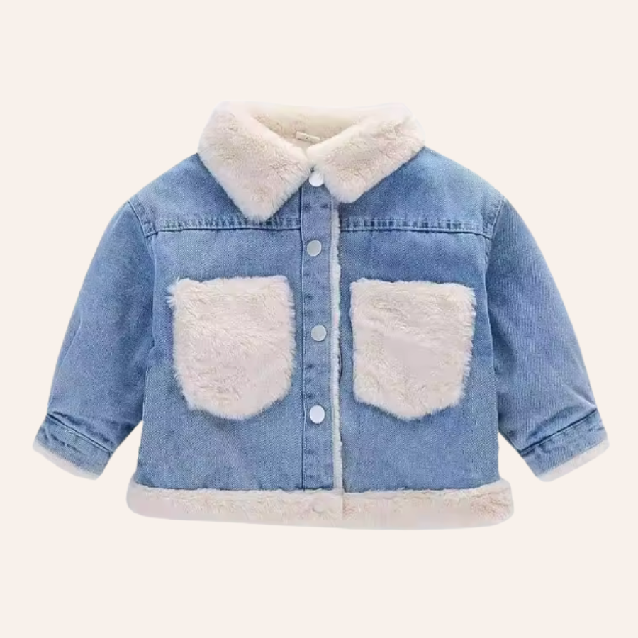 This Kids Denim Sherpa Jacket features a cozy Sherpa lining and classic denim style. Available in sizes 5T to 7, it’s perfect for keeping your child warm and stylish on cool days.