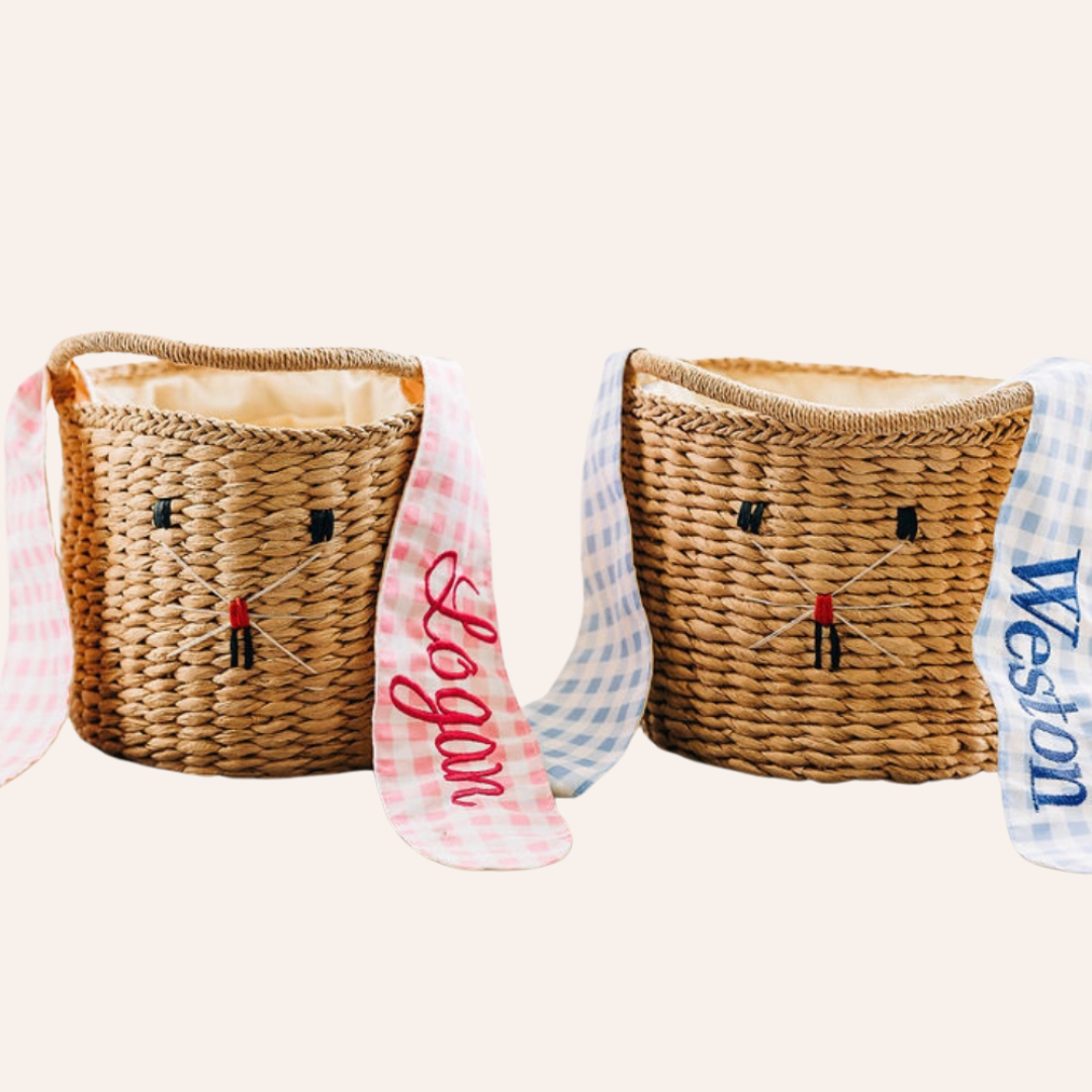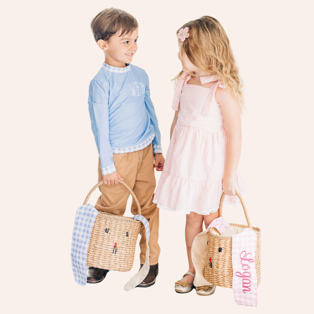 Make Easter extra special this year with the Gingham Kids Easter Basket! Choose from either a blue or pink gingham bunny basket, personalized to make your little one smile. A fun and festive addition to any Easter celebration! π